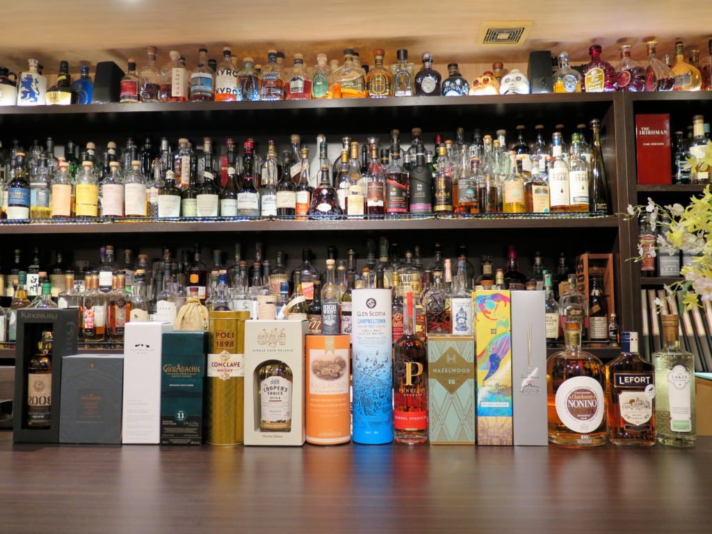 内訳はモルトウイスキー8本、ブレンデッドウイスキーとラムが2本ずつ、バーボン、グラッパ、リキュールが1本ずつです。